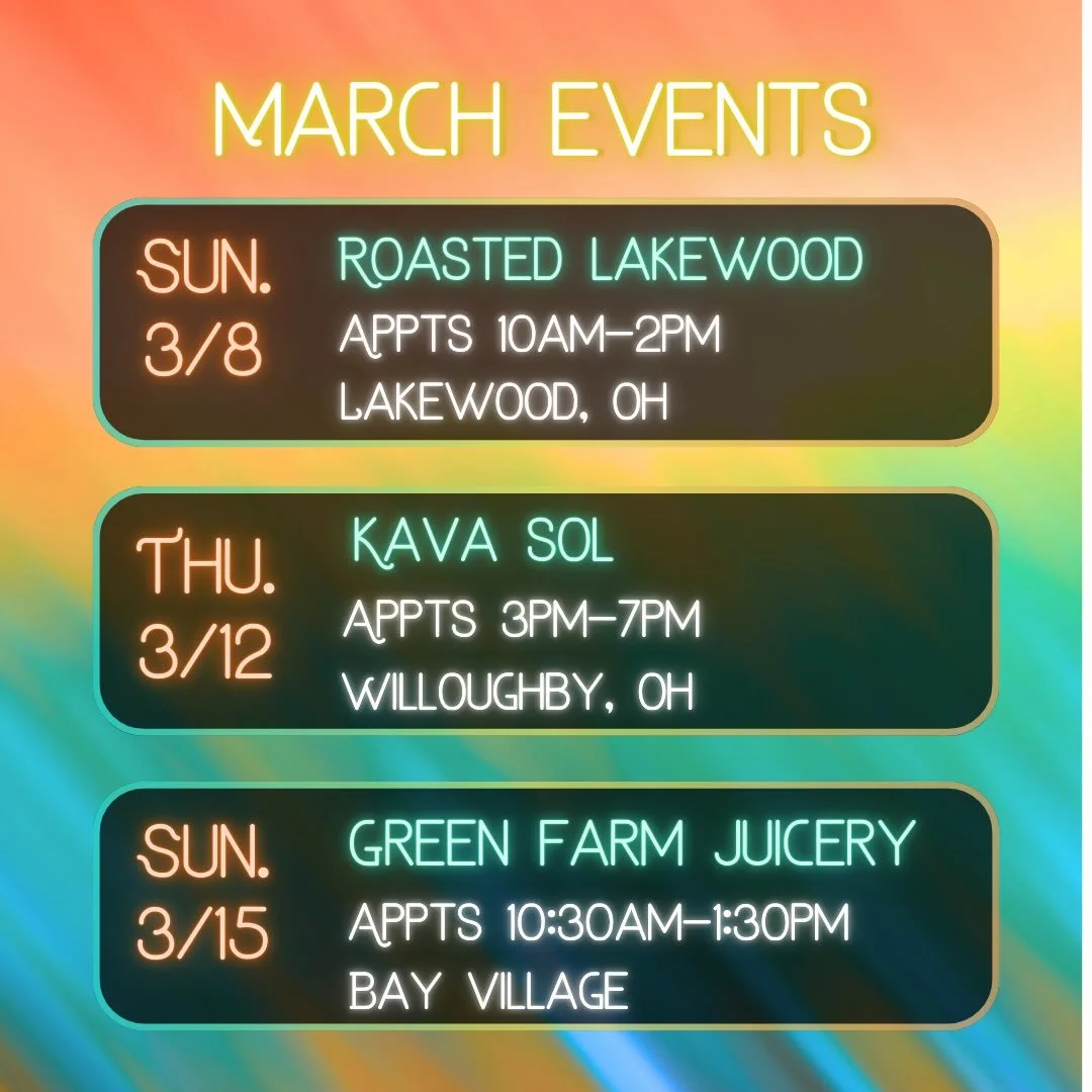 All of our public events are posted to the monthly calendar with details about services, time, and how to book your appointment.